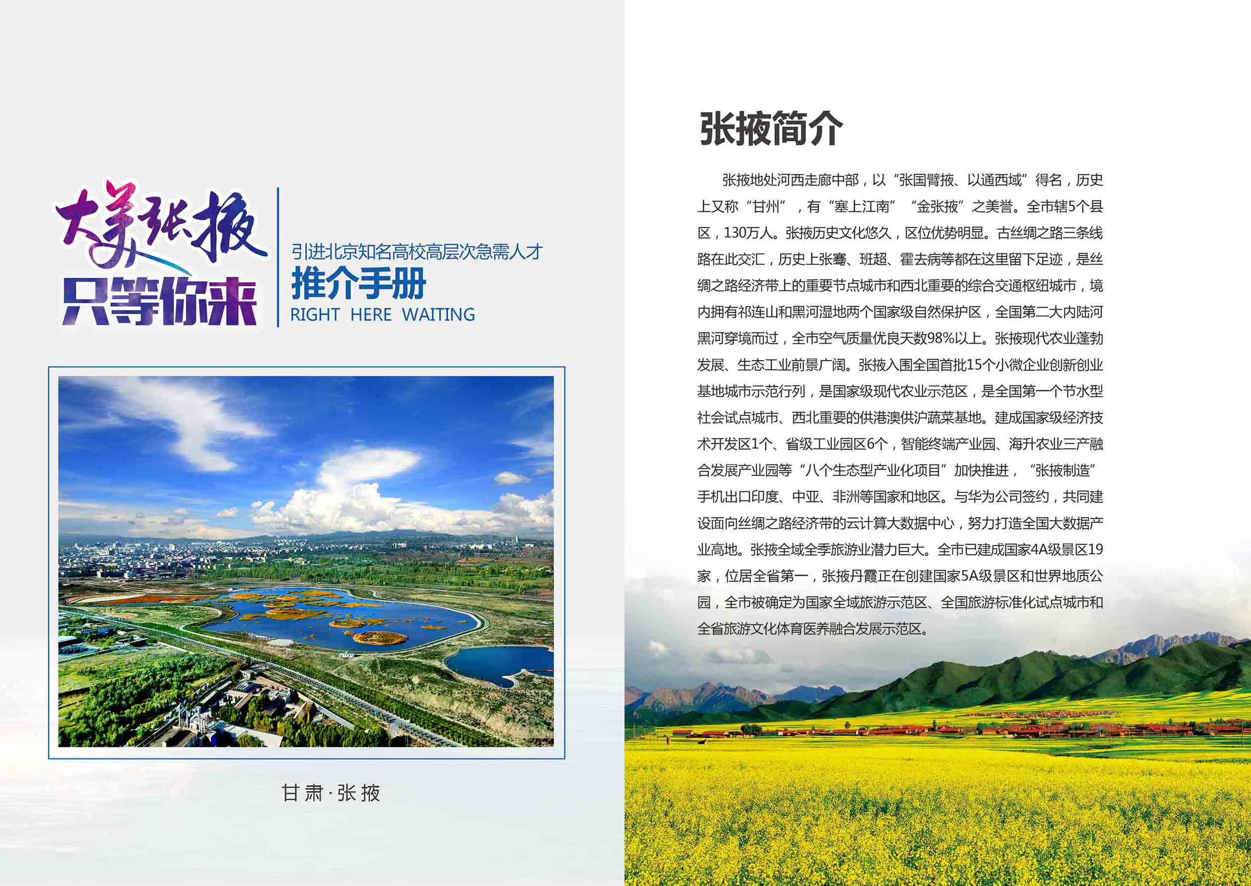 大美張掖引進(jìn)北京知名高校高層次急需人才推介手冊設(shè)計印刷