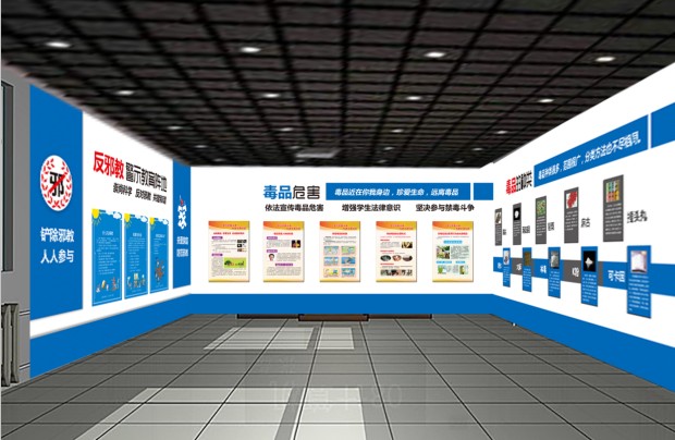 由我公司設計施工的民樂縣新天學校禁毒展覽館完美收工,其設計風格和后期施工得到學校領導認可。