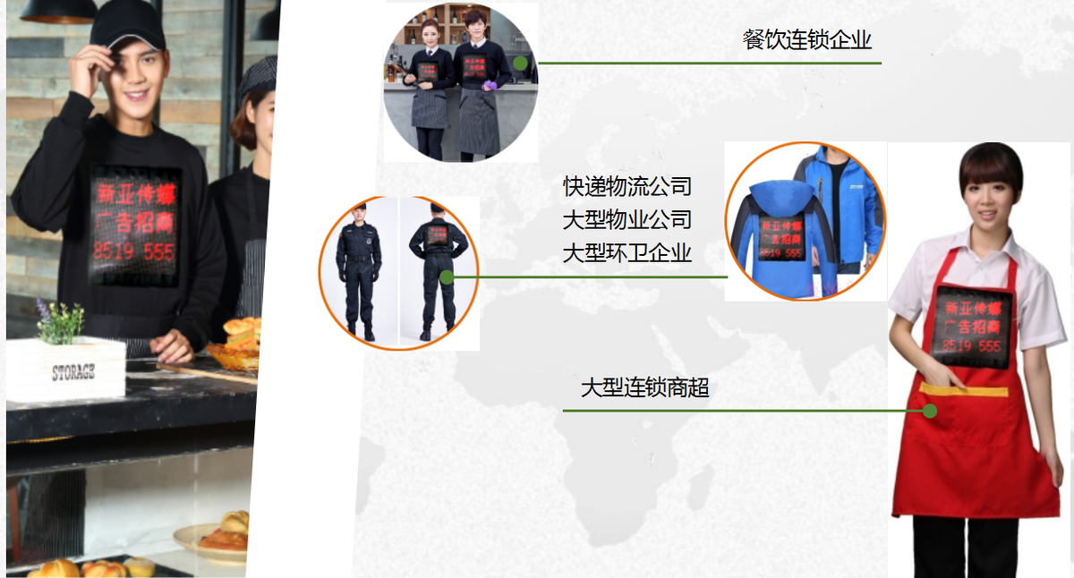 變衣科技的打法就是把他們的產(chǎn)品應(yīng)用在零售店、大型商超等人員密集場(chǎng)所的員工身上,讓一塊塊屏幕變成流動(dòng)的廣告位。一旦點(diǎn)位足夠多,就會(huì)成為新零售時(shí)代線下流量的重要入口,成為新零售領(lǐng)域的分眾傳媒。